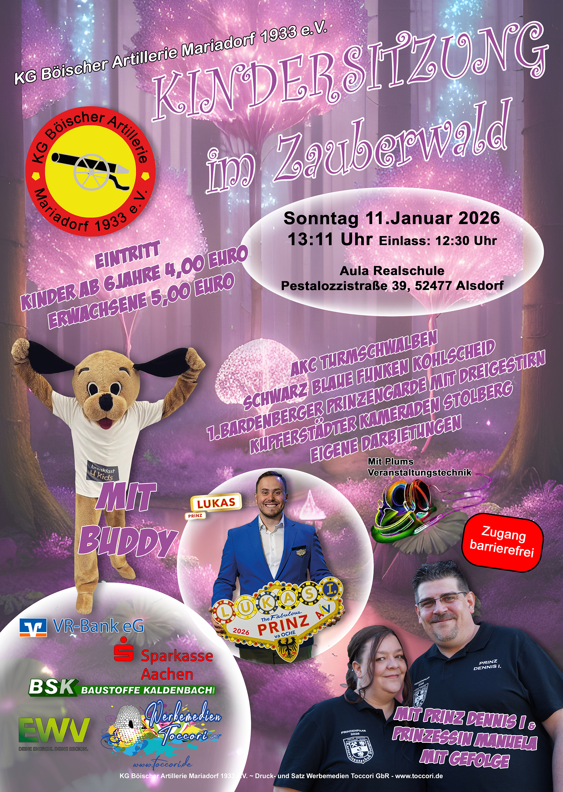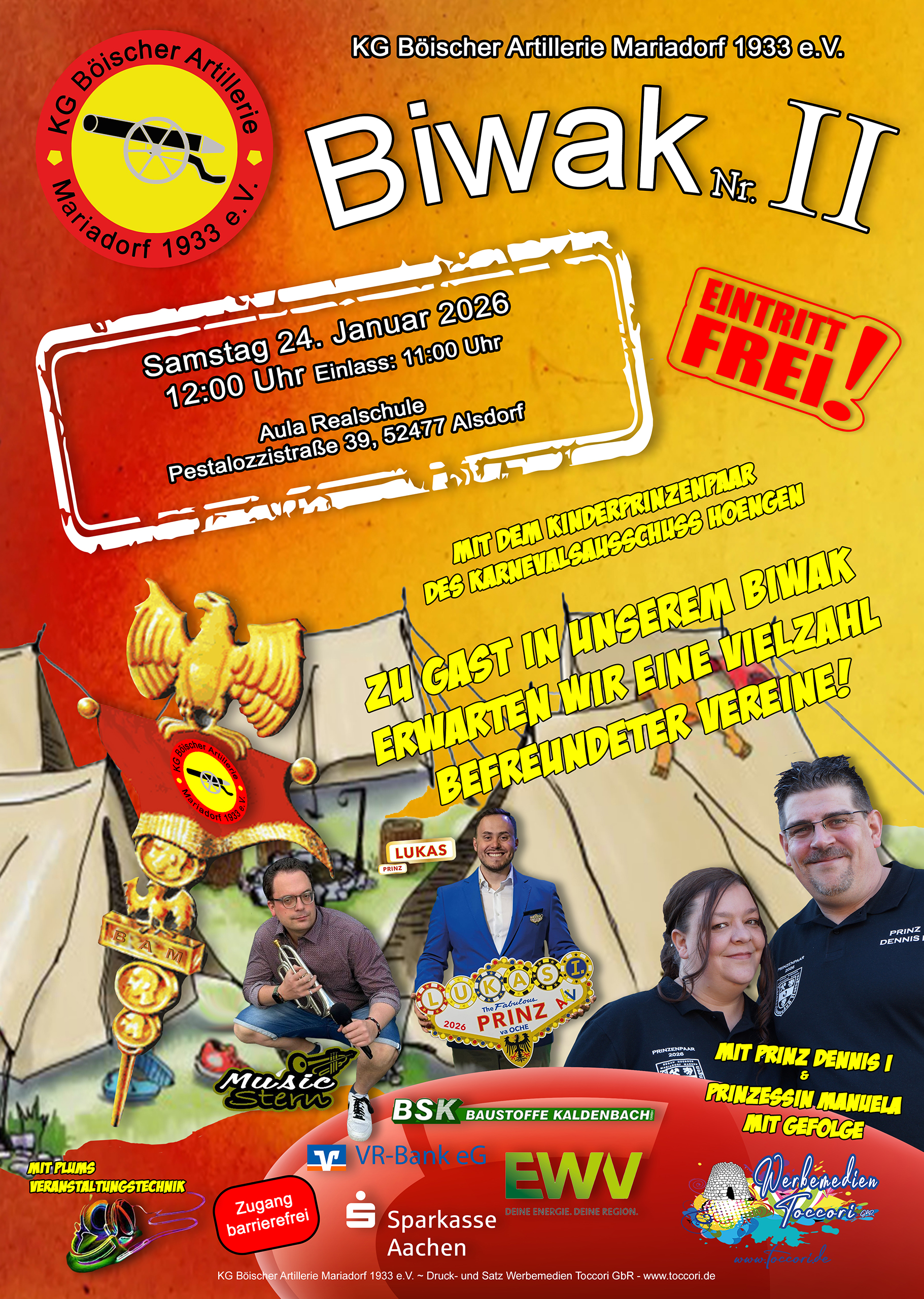 Das Augenmerk der KG Böischer Artillerie Mariadorf 1933 e.V. lieg in der Erhaltung und Pflege des Brauchtums Karneval. Wir leben alte Werte und vermittel diese in unserer Jugendarbeit.